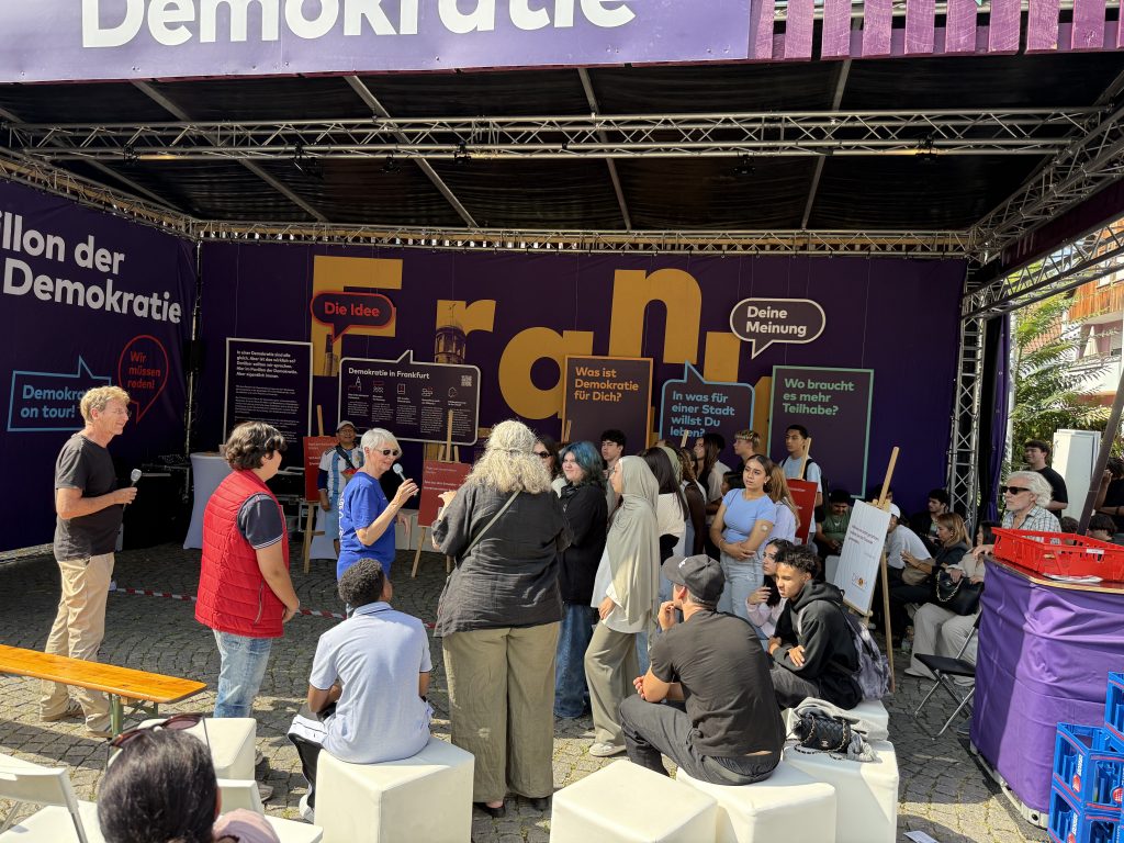 1 „Pavillon der Demokratie“ ist ein Projekt des Dezernat II – Bürgermeisterin, Diversität, Antidiskriminierung und gesellschaftlicher Zusammenhalt der Stadt Frankfurt am Main.
