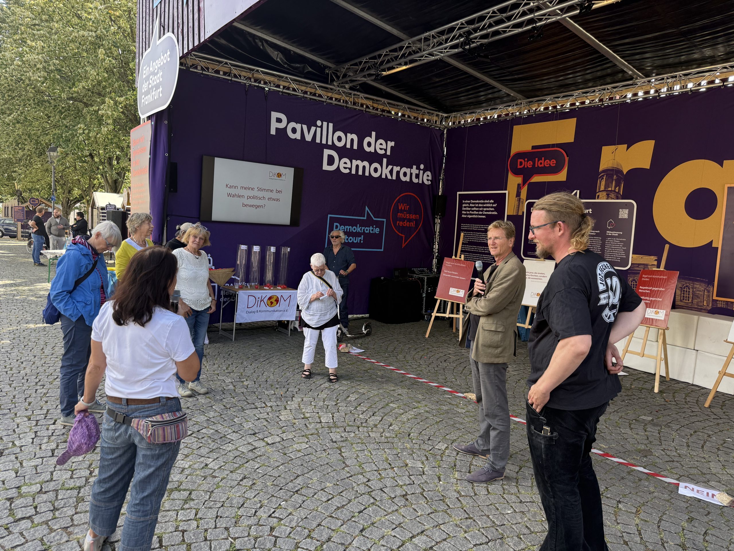 Das sind u.a. Beweggründe für die Aktion, die DiKOM im Rahmen des Projektes „Pavillon der Demokratie“1 mit den Besucher*innen gestaltet hat.